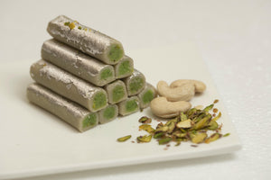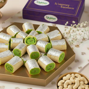 Indulge in the perfect blend of premium cashews and pistachios with our Kaju Pista Roll. This delightful confection combines creamy cashew paste with vibrant pistachio pieces, rolled into a convenient bite-sized treat. Each roll delivers a rich, nutty flavor and smooth texture that melts in your mouth. Ideal for gifting, celebrations, or satisfying your sweet cravings, this traditional Indian sweet offers a modern twist on a beloved classic. Perfect for those who appreciate quality ingredients and authentic taste.